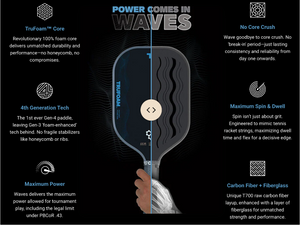 From your first swings, you will feel the paddle’s plush, controlled response. Make no mistake, that feel doesn't come at the cost of force. As soon as you accelerate, the newly engineered Waves core releases stored energy like the strings of a tennis racket, unleashing serious put-away power.
